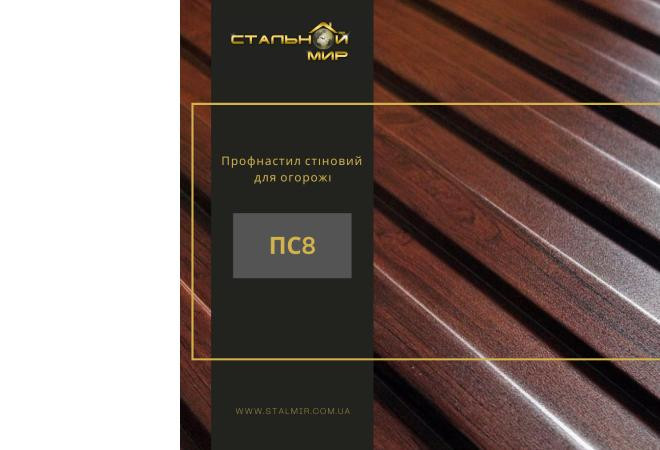 Універсальність: Профнастил ПС8 рівносторонній чудово підходить для створення стін та огорож завдяки своєму універсальному профілю. Він надає можливість реалізації різноманітних дизайнерських та архітектурних ідей.